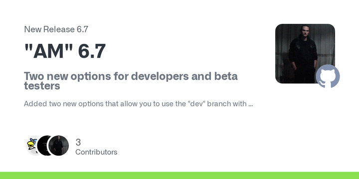 Added two new options that allow you to use the "dev" branch with all new features (for beta testers and brave hearts)