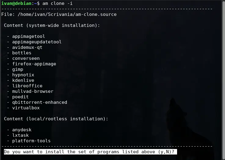 Moreover, the "clone or --clone" option allows users to install listed apps in their original layout by running "am clone -i" or "am clone install." To install packages locally like AppMan, users can add the "--user" flag. Conversely, to install packages at the system level, they can use the "--system" flag.