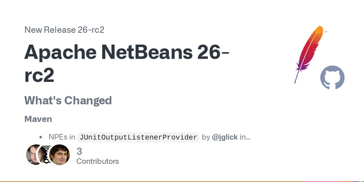 The second release candidate of Apache NetBeans IDE 26 has been released for testing, featuring enhancements like better management of const keywords in web JavaScript and the renewal of expired badssl test certificates for unit testing.