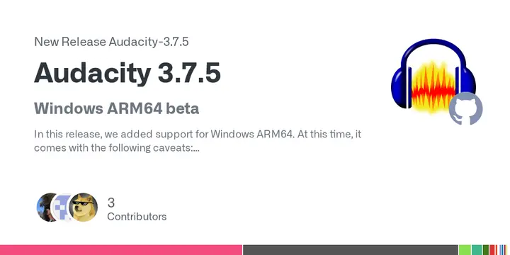 Audacity 3.7.5 has been released with ARM64 on Windows as well as the inclusion of a FLAC importer for 32-bit PCM, resolution of crashes, and updates to libopus, libcurl, and libpng.