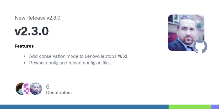 Auto-Cpufreq version 2.3.0 has been released. The changelog includes features such as adding conservation mode to Lenovo laptops, reworking the configuration, creating workflows for Linux and Nix builds, bug fixes, updating error handling, updating psutil, fixing syntax warnings, updating maintainer lists, fixing spam error messages, adding charge threshold warnings, and improving cryptography.