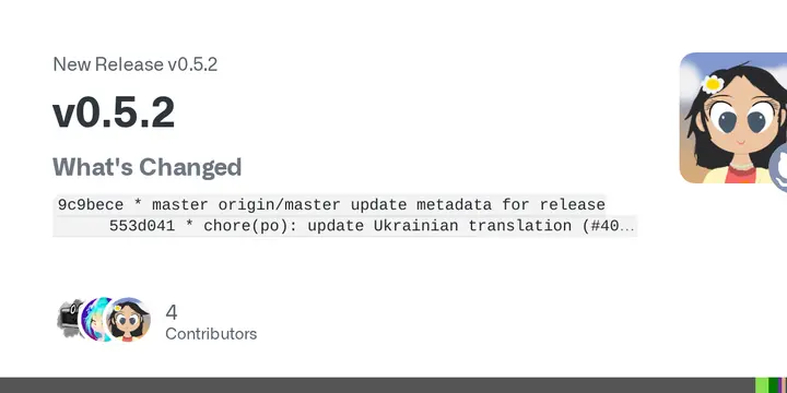 What's Changed 9c9bece * master origin/master update metadata for release 553d041 * chore(po): update Ukrainian translation (#408) 711732a * Rework Version History (#407) d2d3771 * Calculate detail...