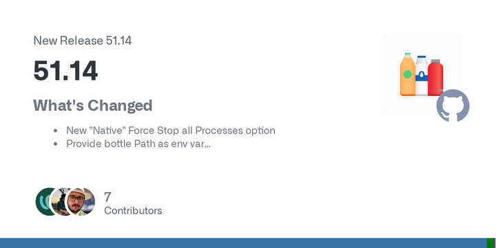Bottles 51.14 has been released, with new features including a "Native" Force Stop all Processes option, Win11 compatibility, support for personal repositories, updates to the GNOME runtime and Wine base, translations, a Pre-Run script, corrections for bottles with varied names and directories, and HyperBit SRLs as a sponsor.