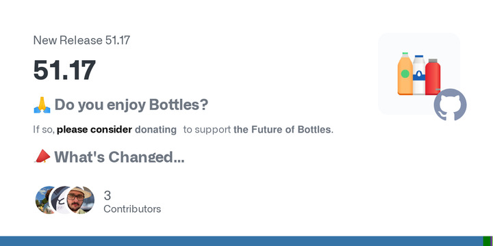 Bottles 51.17 has been released with changes including updated subtitles, a restored line, and a regression causing the preferences page to be blank in some cases.