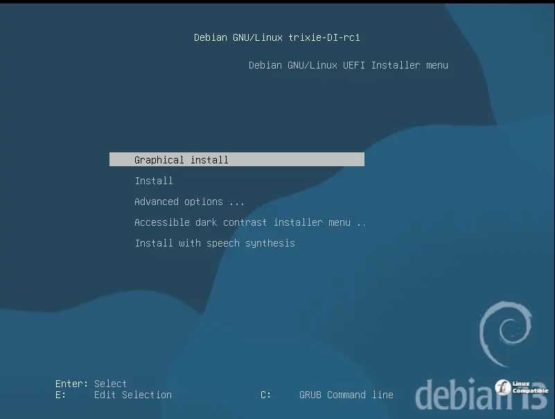 The Debian Installer team[1] is pleased to announce the first release candidate of the installer for Debian 13 "Trixie".