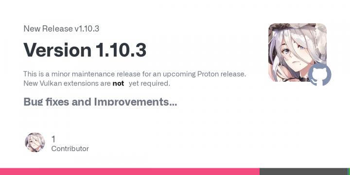 This is a minor maintenance release for an upcoming Proton release. New Vulkan extensions are not yet required.