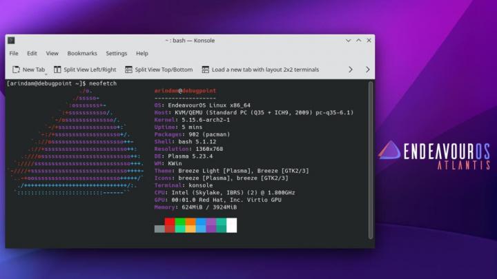 DebugPoint published a review on the Arch Linux based EndeavourOS 21.4.