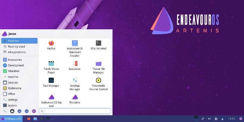 EndeavourOS 22.6Endeavour is available as a single 1.8GB download for 64-bit (x86_64) computers. Booting from the project's live media brings up a menu asking if we'd like to launch the distribution normally, run the live media with improved NVIDIA video support, or launch in fallback mode. The normal method worked well for me and the live media quickly loaded the Xfce desktop. The Xfce interface is arranged with a panel across the bottom of the screen. This panel holds the application menu, quick-launch icons, task switcher, and system tray.