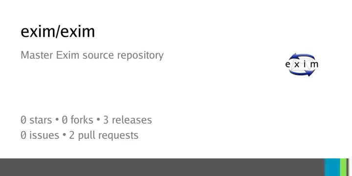 - Directly from Git: https://code.exim.org/exim/exim (tag: exim-4.99-RC1)