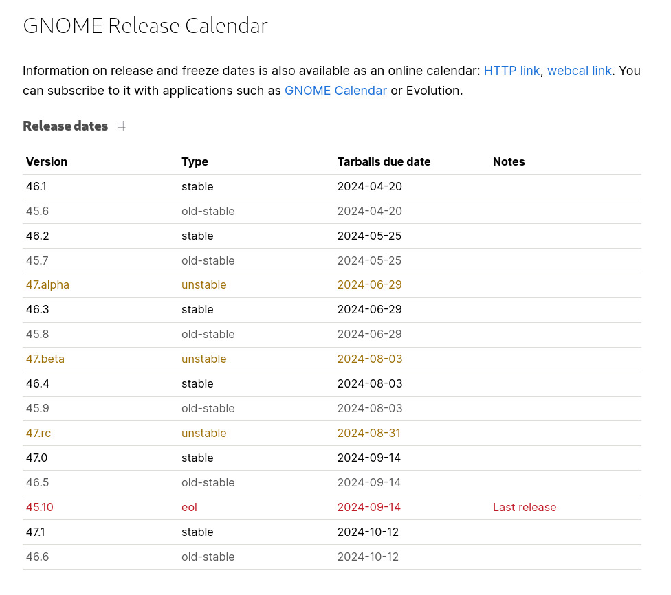 The release schedule for GNOME 47 is now available. Apologies for the delay on this one. The only notable change is 47.1 will be four weeks after 47.0 instead of five weeks. We’ll see how this goes.
