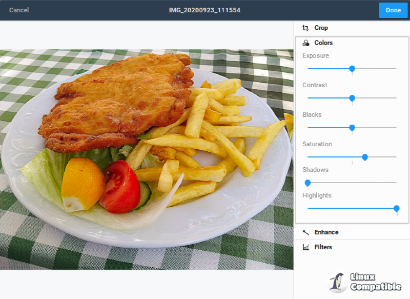 Access, organize and share your photos on GNOME. A simple and elegant replacement for using a file manager to deal with photos. Enhance, crop and edit in a snap. Seamless cloud integration is offered through GNOME Online Accounts.