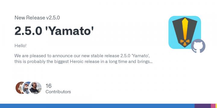 We are pleased to announce our new stable release 2.5.0 'Yamato', this is probably the biggest Heroic release in a long time and brings features that we can say are 'closing a circle'. It was more than 3 months of work and we could focus on features that we wanted to add for a long time, probably since our first releases.