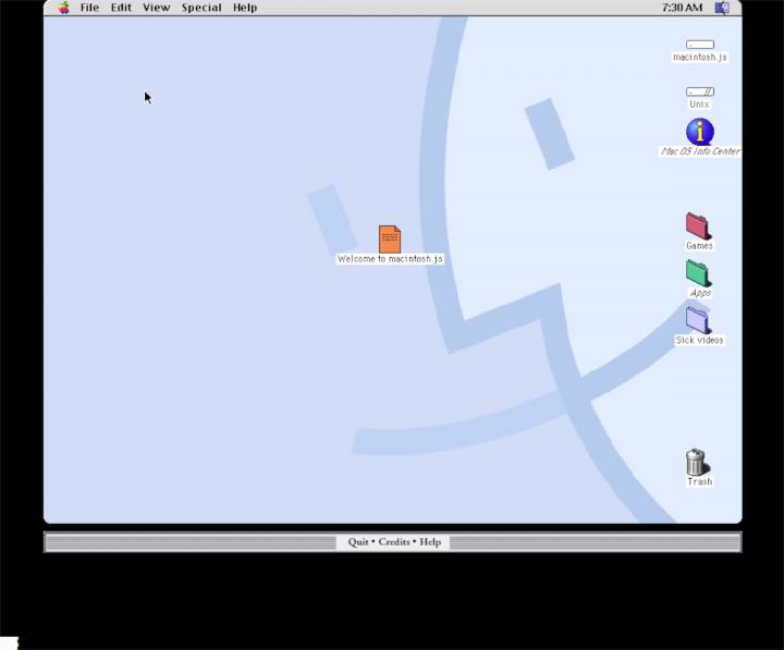 Macintosh.js is an Electron (web-based) virtual machine that allows the user to experience Mac OS 8 as if they had a real Mac OS computer.