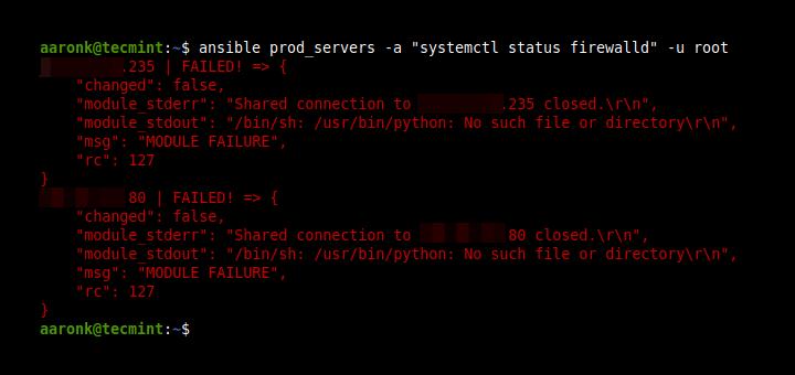 In this short article, we will explain how to solve the: “module_stderr“: “Shared connection to x.x.x.x closed.\r\n”, “module_stdout”: “/bin/sh: /usr/bin/python: No such file or directory\r\n”, while running Ansible commands.