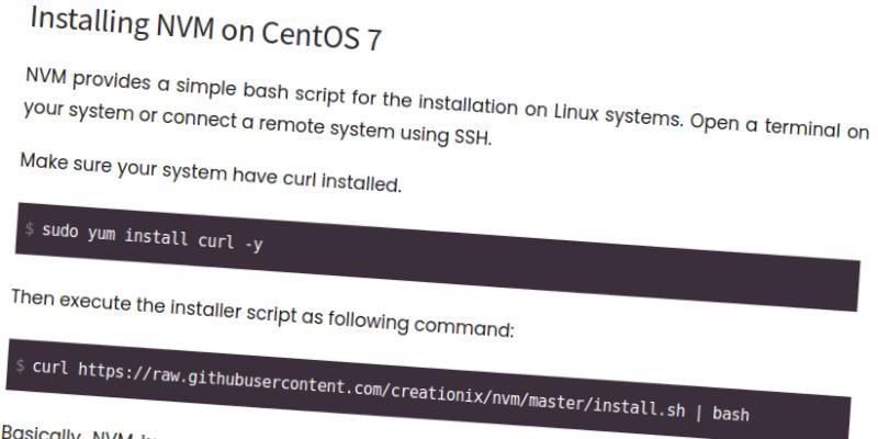 Tecadmin published a tutorial about how to install NVM on CentOS or RHEL 7.