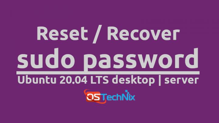 This brief guide explains how to reset sudo password in Ubuntu 20.04 LTS desktop or server. It is easy to recover forgotten sudo user password in Ubuntu.