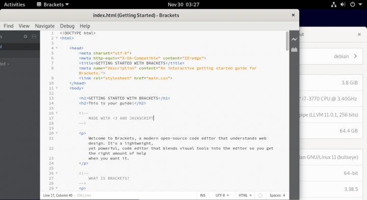 Steps to install Brackets Code editor on popular Debian 11 Bullseye Linux to start coding and have a live preview in the browser.