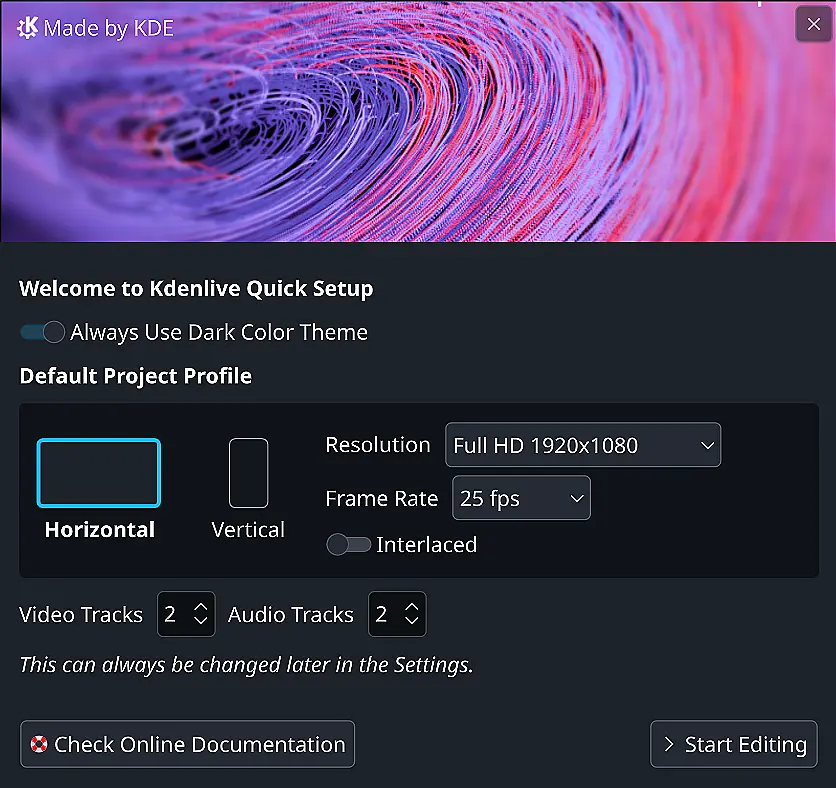There's also a new welcome screen popping up when you first launch Kdenlive after this update. This isn't just some window; it offers a quick way to get into action if you know what you want by providing shortcuts for starting projects with common preferences or importing settings directly on boot-up. Less clicking around, more diving in..