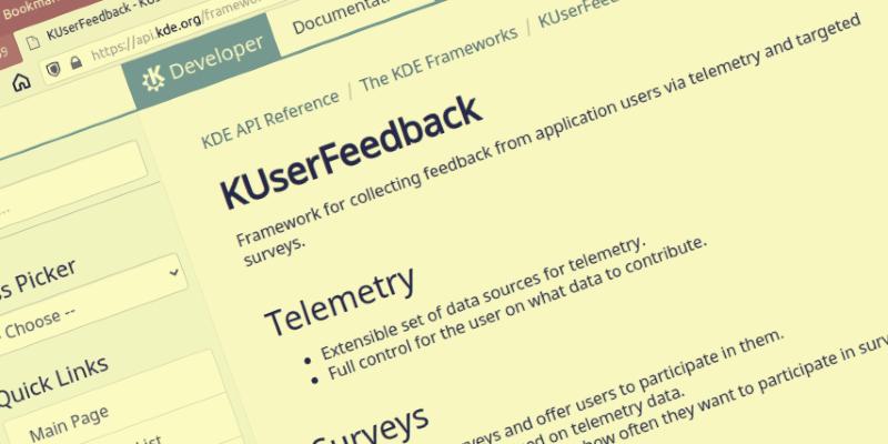 KUserFeedback is a library for collecting user feedback for apps via telemetry and surveys.