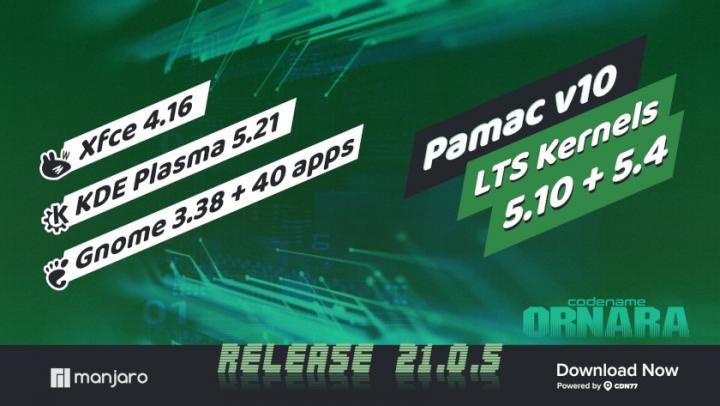 Manjaro 21.0.5 Ornara has been released with the latest updates.