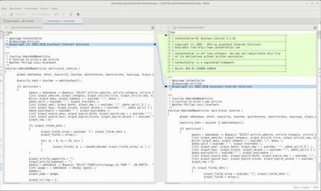 Meld lets you compare two or three files, and updates the comparisons while you edit them in-place. You can also compare folders, launching comparisons of individual files as desired. Last but by no means least, Meld lets you work with your current changes in a wide variety of version control systems, including Git, Bazaar, Mercurial and Subversion.