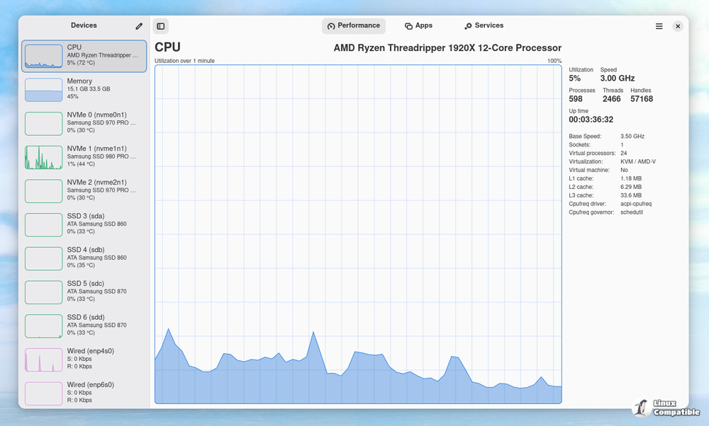 Mission Center 1.0.0 has been released on Flathub and is a Linux application designed to monitor system resource utilization, encompassing CPU, memory, disk, network, and GPU usage. The application provides capabilities for monitoring system processes, thread and handle counts, uptime, clock speed, cache sizes, RAM and swap usage, disk utilization and transfer rates, network utilization and transfer speeds, as well as GPU usage. The tool additionally oversees system fans and offers a streamlined summary view for efficient monitoring.