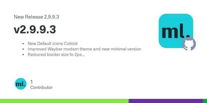 New Default icons Colloid Improved Waybar modern theme and new minimal version Reduced border size to 2px Border size of NWG Dock Hyprland can be modified in ~/.config/ml4w/settings/dock-border.css...