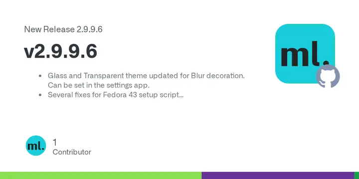 Glass and Transparent theme updated for Blur decoration. Can be set in the settings app. Several fixes for Fedora 43 setup script Global font set in nwg-look Fix Quicklinks module in glass and tran...