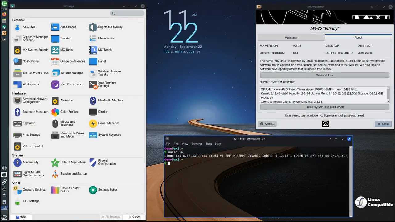 The MX-25 "Infinity" beta 1, built from Debian GNU/Linux 13 Trixie, has now been made available for public testing. This release is a cooperative effort between the antiX and MX Linux communities, with the aim of creating a family of operating systems that combine elegant desktops with high stability and performance.
