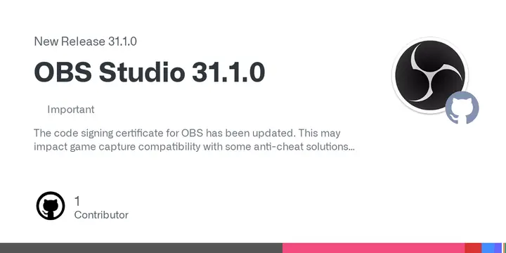 OBS Studio 31.1.0 has been released and introduces various new features and addresses several bug fixes. OBS has updated its code signing certificate, potentially affecting game capture compatibility with specific anti-cheat solutions. The latest updates encompass support for Windows on Arm (WoA), enhanced UI appearance options, preview zoom controls, and the introduction of multitrack video support for macOS and Linux. Additionally, there are new canvases for multitrack video output, AV1 B-frame support for AMF, and capabilities for color format/space/range GPU conversion. The updates also include network optimizations, TCP Pacing, Stream Delay, and a spatial AQ option for VideoToolbox encoders. Furthermore, explicit sync support for PipeWire Screen Capture has been added, along with V4L2 virtual camera support in non-Linux environments and hardware-accelerated browser source support for Linux.