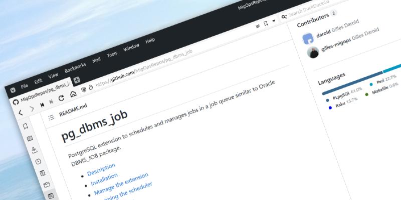 pg_dbms_job 1.5.0 has been released. pg_dbms_job is a PostgreSQL extension to create, manage and use Oracle-style DBMS_JOB scheduled job.