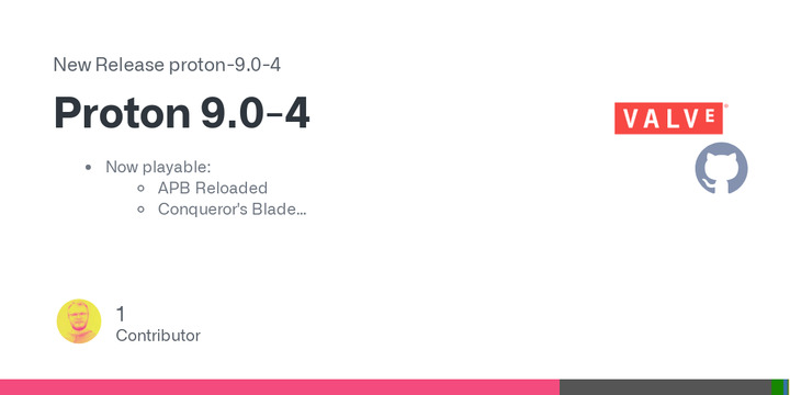 Valve Software has announced the release of Proton 9.0-4, which addresses issues for several games, including APB Reloaded, Conqueror's Blade, Cube Hero Odyssey, Disgaea 4 Complete+, Hard Chip Demo, ScarQuest, Sniper Elite, Test Drive Unlimited Solar Crown, Total War: SHOGUN 2, and Warhammer 40k: Space Marine 2.