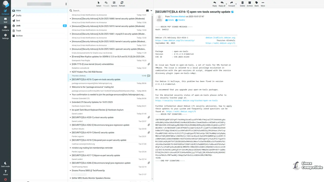 Several key issues have been addressed, such as handling non-Unicode characters in plain text messages and parsing inline styles that are not well-formatted. Moreover, the release includes improved phishing detection features, including a warning icon displayed before email addresses when homograph attacks are suspected.
