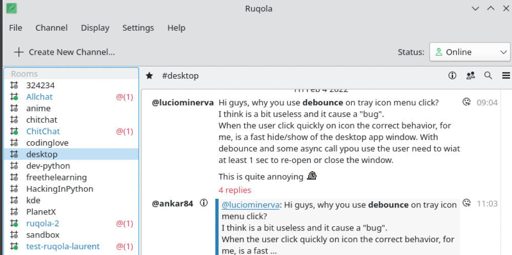 Ruqola 2.1.1 is a bugfix release of the Rocket.chat app.