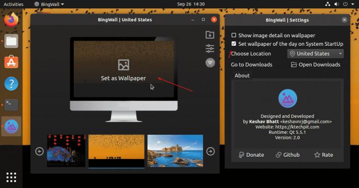 Change Ubuntu Linux desktop background wallpaper automatically by installing Bing Wall open-source application via Snap command