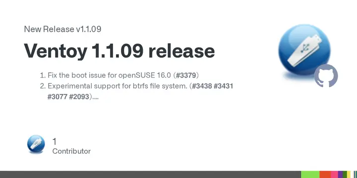 The popular bootable USB drive utility, Ventoy, just got an update to version 1.1.09.