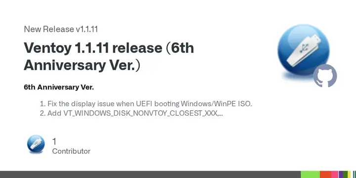 Release Ventoy 1.1.11 release (6th Anniversary Ver.) ยท ventoy/Ventoy