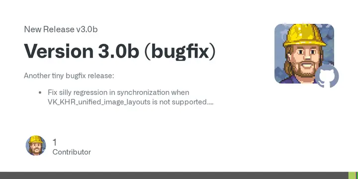 Another tiny bugfix release: Fix silly regression in synchronization when VK_KHR_unified_image_layouts is not supported. Update shader workaround hash for Wuthering Waves