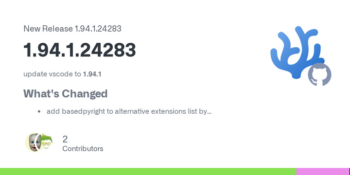 VSCodium 1.94.1.24283 has been released, with changes such as updating vscode to 1.94.1, adding basedpyright to the alternative extension list, and manually specifying the correct commit ID.