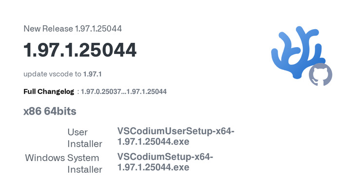 A new version of VSCodium, a version of VSCode that excludes Microsoft branding and telemetry features, has been released. This release includes the updates from VSCode version 197.1.