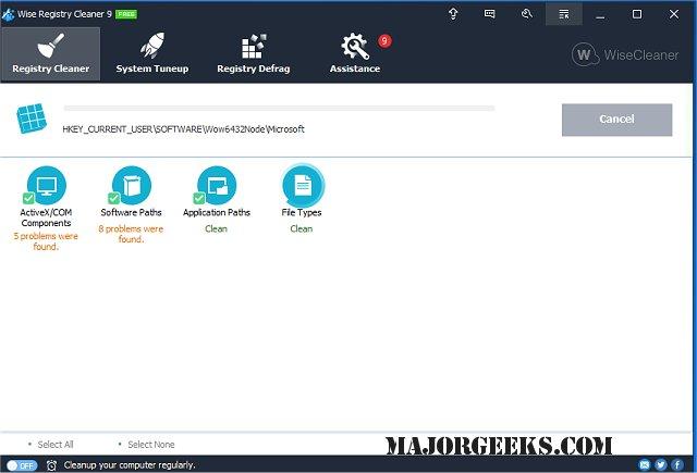 Wise Registry Cleaner scans the Windows registry and finds incorrect or obsolete information in the registry. This is one of many tools included in the Wise Care 365 free suite. After analyzing your system for problems, you can individually view each issue and call up a detailed description. If you wish, you can also have all problems corrected automatically.