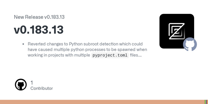 The Zed release v0.183.13 has resolved issues related to Python subroot detection, effectively preventing the spawning of multiple Python processes in projects that contain multiple pyproject.toml files.