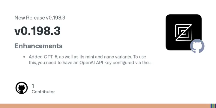 An update for the Zed editor has been launched, featuring support for GPT-5.