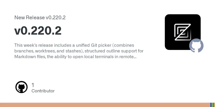 This week's release includes a unified Git picker (combines branches, worktrees, and stashes), structured outline support for Markdown files, the ability to open local terminals in remote projects,...