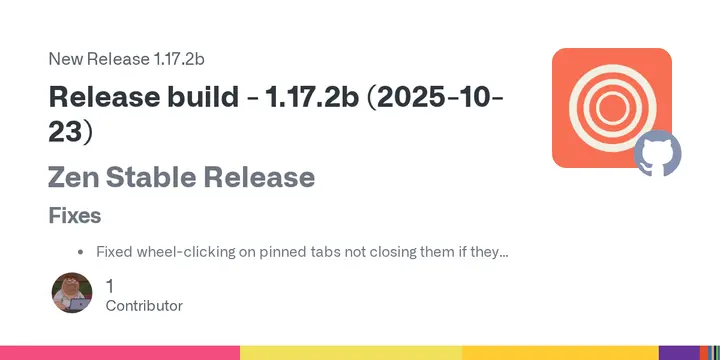 Zen-browser/Desktop Release Release build - 1.17.2b (2025-10-23)